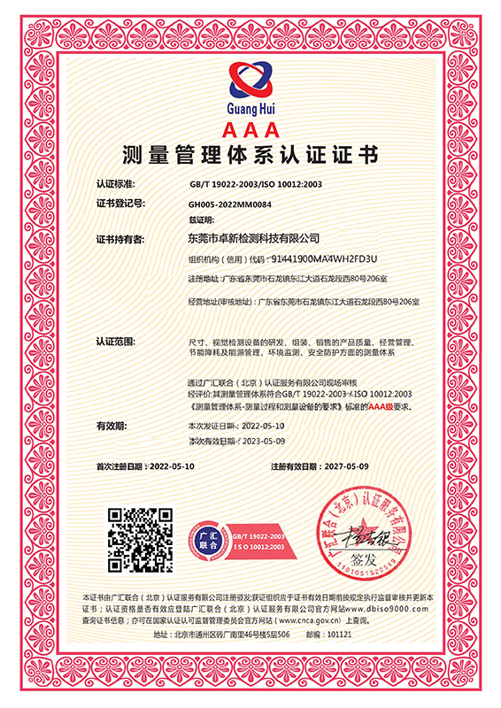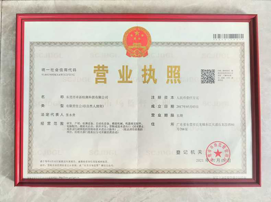 公司简介东莞市卓新检测科技有限公司(简称“卓新智能”),是一家植根于中国智能制造前沿的国家高新技术企业。我们以自主创新为基石,集前沿技术研发、高端系统集成、精准市场运营与全周期服务于一体,致力于成为全球制造业智能化升级的卓越赋能者。